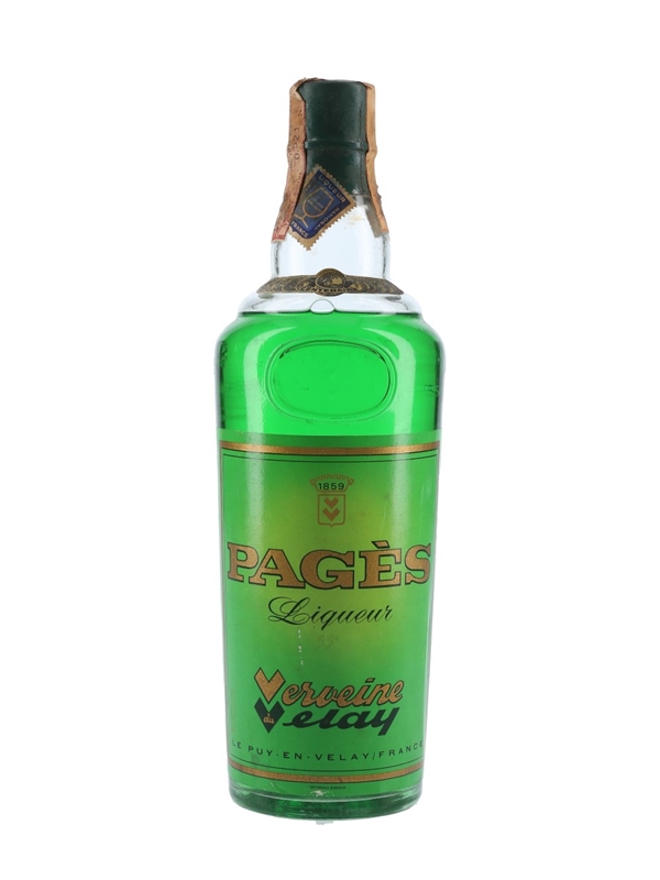 A bottle of Pagès Verveine du Velay liqueur produced in France. This was bottled for the Italian market and imported by Wax&Vitale, we estimate in the 1960s.