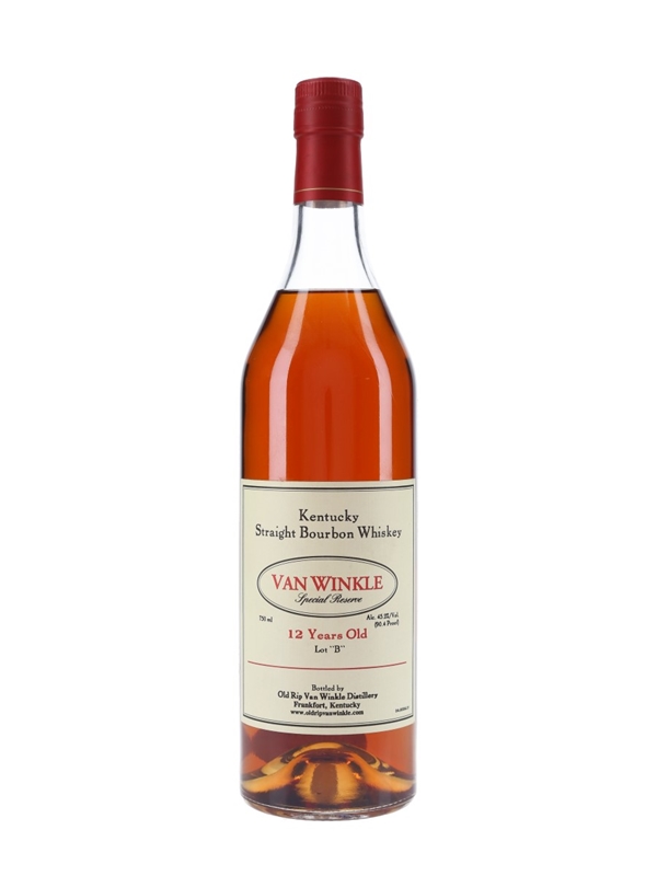 A bottle of Van Winkle 12 Year Old Special Reserve Kentucky Straight Bourbon Whiskey, bottled by Old Rip Van Winkle Distillery, Frankfort. The bottling code indicates this was bottled in 2012.