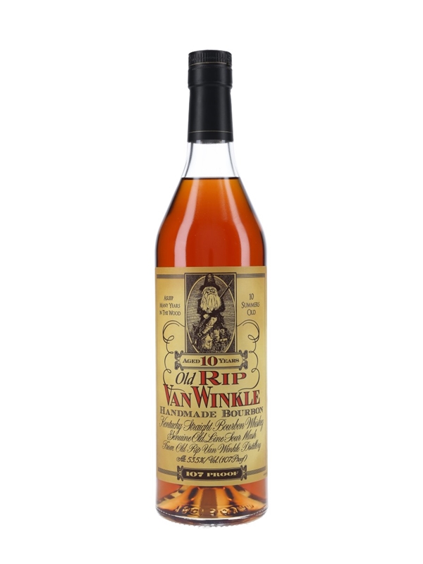 A bottle of Old Rip Van Winkle 10 Year Old Handmade Bourbon, distilled, aged and bottled by Old Rip Van Winkle Distillery, Frankfort. The bottling code indicates this was bottled in 2019.