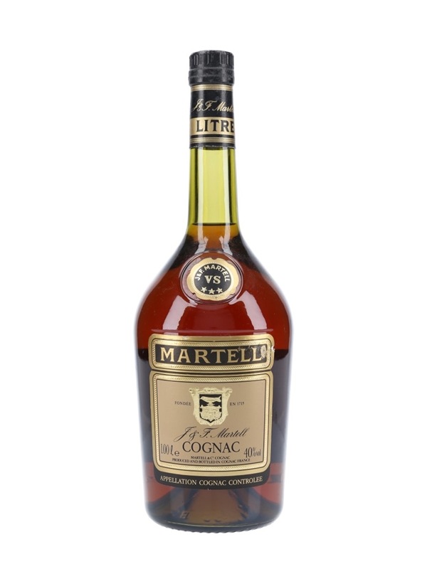 A litre bottle of Martell 3 Star Very Special Cognac. We estimate this was bottled in the 1980s.