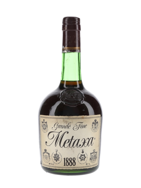A bottle of Metaxa 1888 Grande Fine brandy. We estimate this was bottled in the 1970s.