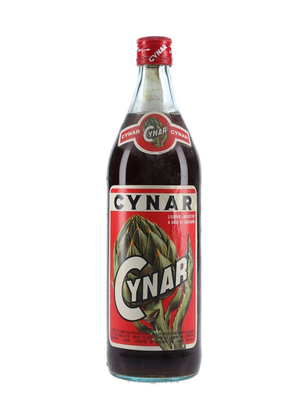 A litre bottle of Cynar, a bitter liqueur made from 13 herbs and plants, predominantly artichoke. We estimate this was bottled in the 1970s.