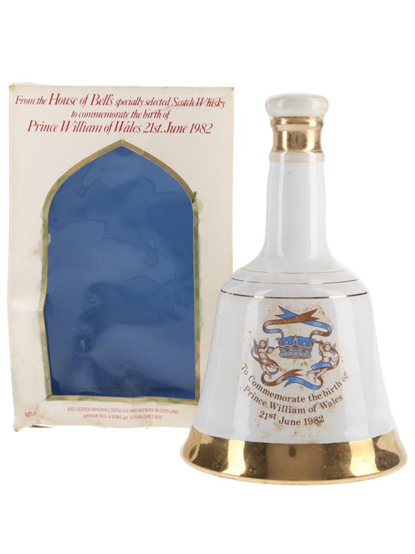 A 50cl ceramic decanter of Bell's Scotch Whisky released to celebrate the birth of Prince William of Wales in 1982.