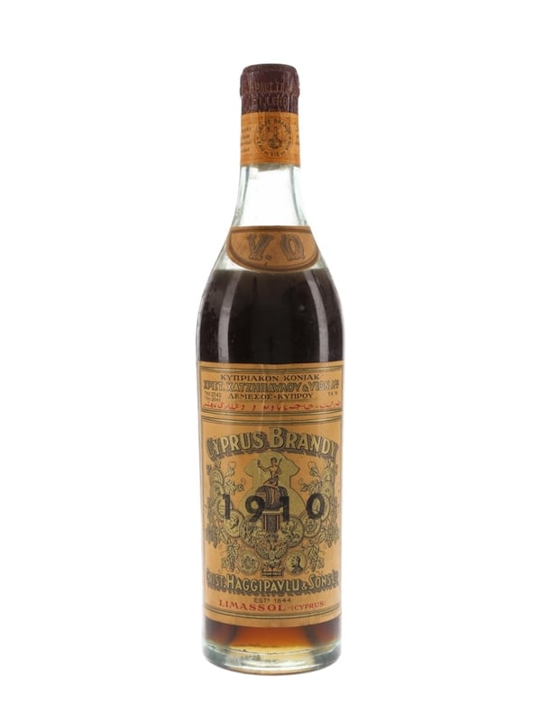 A bottle of Haggipavlu 1910 VO Cyprus Brandy.