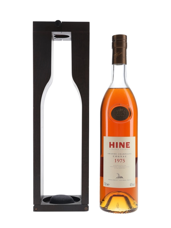 A bottle of Hine 1975 vintage Grande Champagne Cognac.