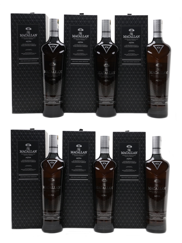 A case of six bottles of The Macallan Aera Highland Single Malt Scotch Whisky. These were matured in sherry-seasoned casks and bottled for the Taiwanese market.