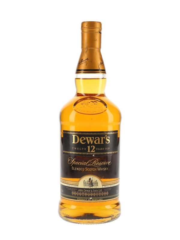 A litre bottle of Dewar's 12 Year Old Special Reserve Blended Scotch Whisky.