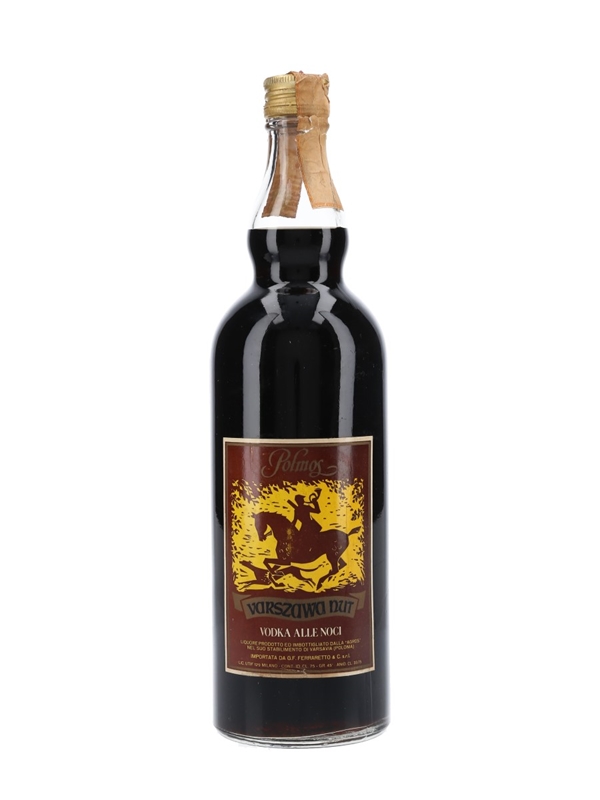 A bottle of Polmos Varszawa Nut Vodka liqueur from Poland. This was bottled for the Italian market and imported by Ferraretto, we estimate in the 1970s.