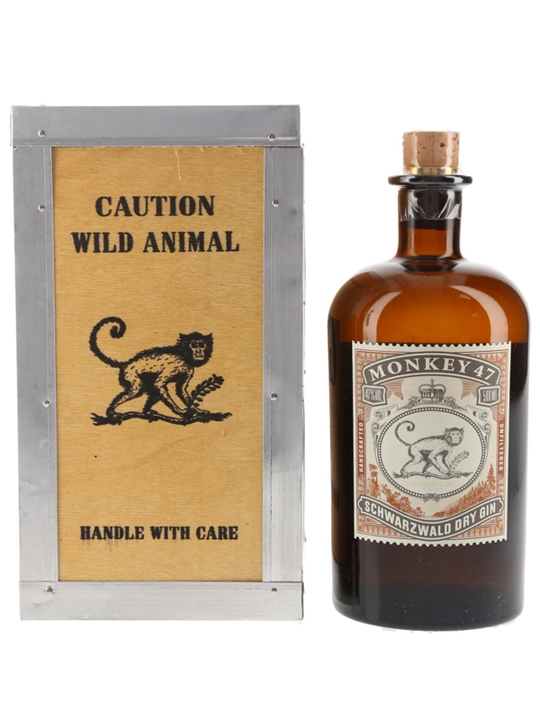 A 50cl bottle of Monkey 47 Schwarzwald Distiller's Cut Dry Gin produced in Germany at Black Forest Distillery. A total of 47 regional botanicals are used in the production of this unfiltered gin, bottled at 47% ABV.