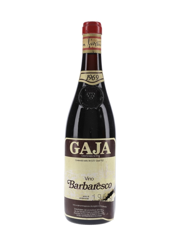 A bottle of Gaja 1969 Barbaresco wine from Italy.