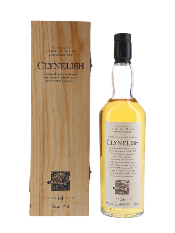 A bottle of Clynelish 14 Year Old Highland Single Malt Scotch Whisky from Diageo's Flora & Fauna series. This proved to be very popular and led to Diageo producing a 14 year old Clynelish as the distillery's standard bottling.