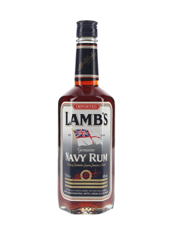 A bottle of Lamb's Genuine Navy Rum, produce of Barbados, Guyana, Jamaica and Trinidad. We estimate this was bottled in the 1990s.