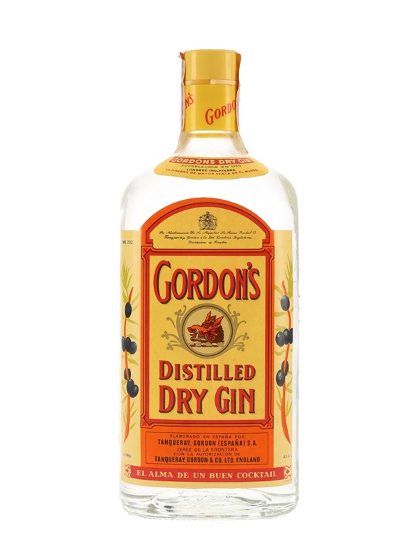 A litre bottle of Gordon's Dry Gin. This was bottled for the Spanish market, we estimate in the 1970s.