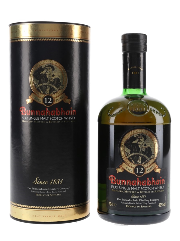 A bottle of Bunnahabhain 12 Year Old Single Islay Malt Scotch Whisky. We estimate this was bottled between 2006 and 2010, before the distillery increased the strength from 40% ABV to 46.3% ABV.