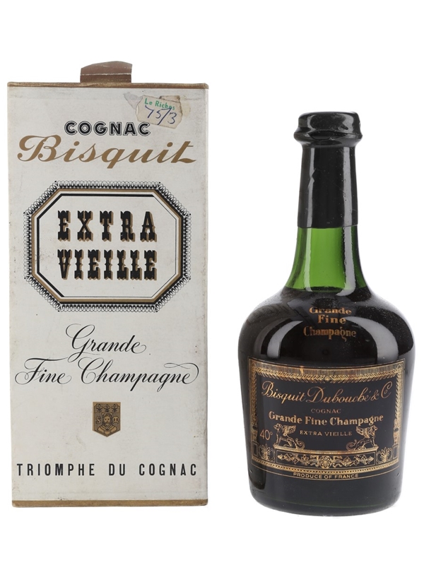 A 38cl bottle of Bisquit Dubouché Extra Vieille Grande Fine Champagne Cognac. We estimate this was bottled in the 1970s.