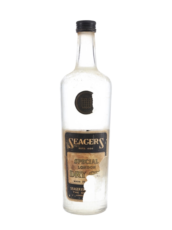 A bottle of Seager's Special London Dry Gin, produced by Seager Evans & Co. Ltd., The Distillery, London. We estimate this was bottled in the 1960s.