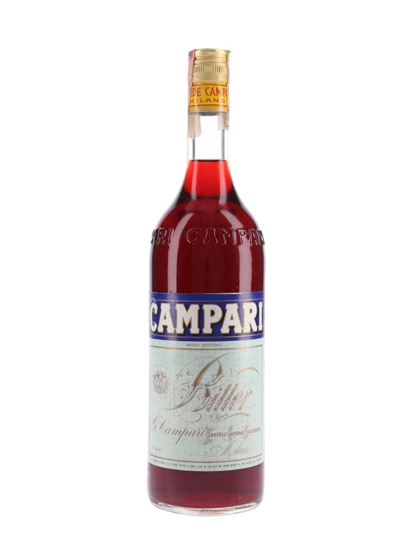 A litre bottle of Campari Bitter liqueur produced in Italy. We estimate this was bottled in the 1970s.