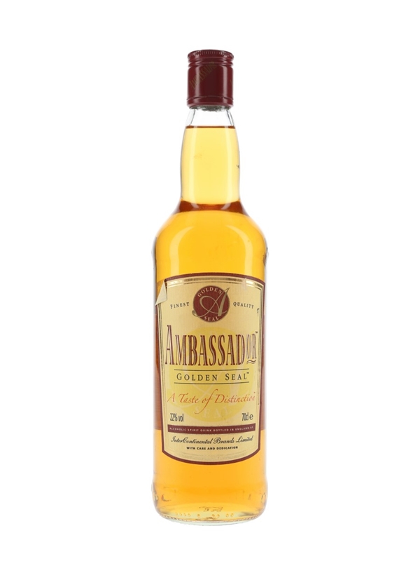 A bottle of Ambassador Golden Seal alcoholic spirit drink.