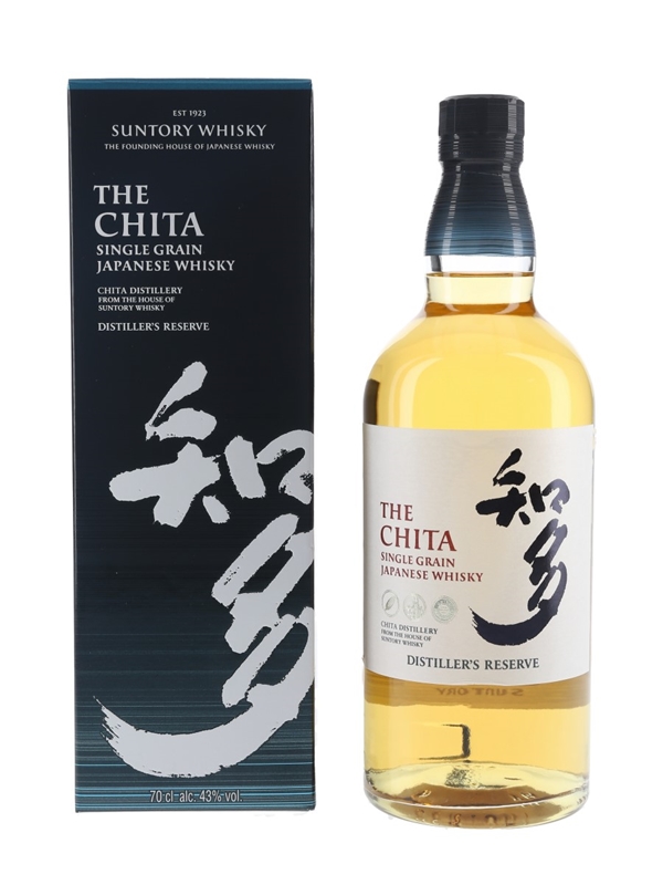A bottle of The Chita Distiller's Reserve Single Grain Japanese Whisky, produced by Suntory. Whisky from Chita distillery is used in Hibiki blended whisky.