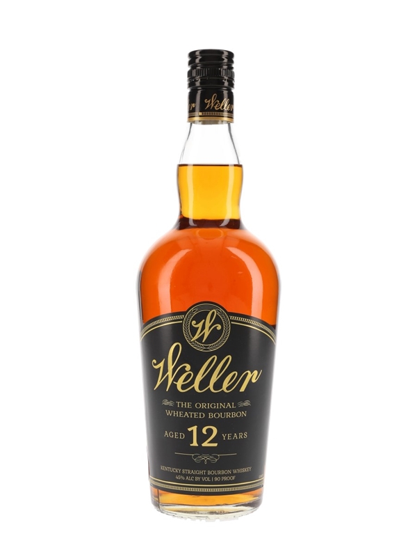 A bottle of Weller 12 Year Old, The Original Wheated Kentucky Straight Bourbon Whiskey. This was produced at Buffalo Trace distillery, bottled at 45% ABV and imported to the UK by Hi Spirits.