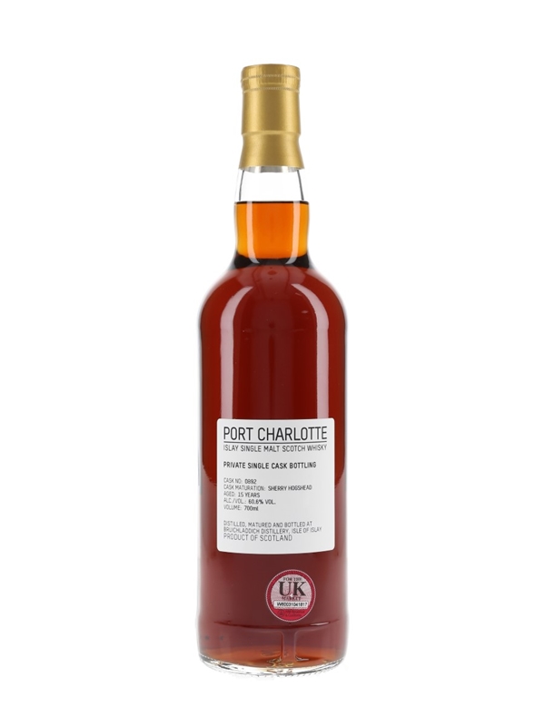 A private cask bottling of Port Charlotte 15 Year Old Islay Single Malt Scotch Whisky, matured in a single sherry hogshead and bottled at 60.6% ABV.