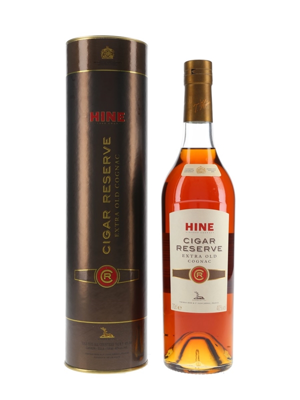 A bottle of Hine Cigar Reserve Extra Old Cognac, specially produced to accompany a fine cigar.