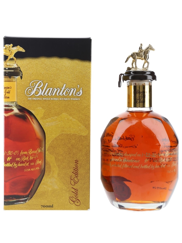 A bottle of Blanton's Gold Edition Kentucky Straight Bourbon Whiskey.