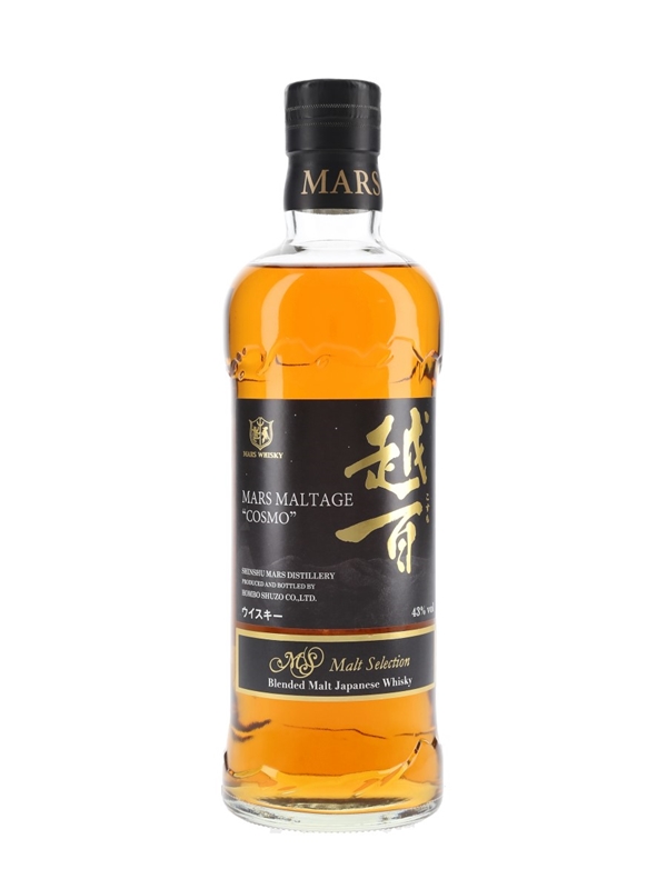 A bottle of Mars Maltage Cosmo Blended Malt Whisky from Shinshu Mars distillery, produced and bottled by Hombo Shuzo Co. Ltd in 2015.