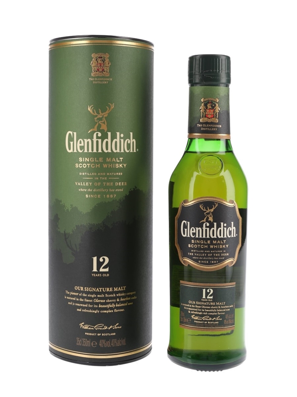An old presentation 35cl bottle of Glenfiddich 12 Year Old Single Malt Scotch Whisky, matured in oloroso sherry and bourbon casks.