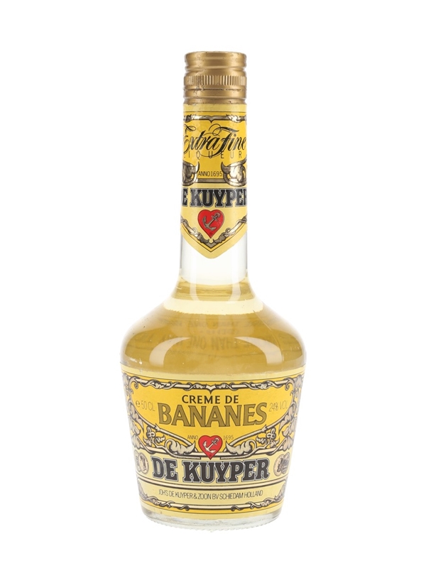 A 50cl bottle of De Kuyper Creme De Bananes Extra Fine Liqueur produced in The Netherlands by Joh's De Kuyper & Zoon Bv Schiedam.
