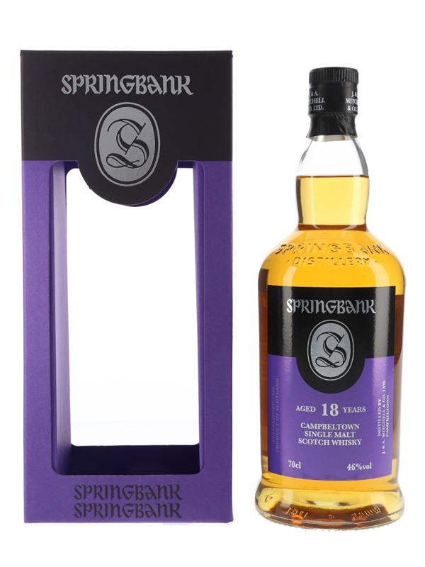 A bottle of Springbank 18 Year Old Campbeltown Single Malt Scotch Whisky, distilled and bottled by J. & A. Mitchell & Co. Ltd. The bottling code indicates this was bottled in 2017.