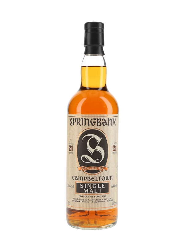A bottle of Springbank 21 Year Old Campbeltown Single Malt Scotch Whisky. We estimate this was bottled in the early 2000s.