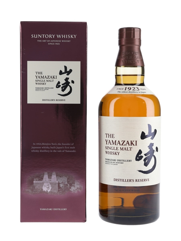 A bottle of Yamazaki Distiller's Reserve Single Malt Whisky, a vatting of whiskies aged in three different cask types: wine, sherry and Mizunara oak. This was imported by Morrison Bowmore Distillers Ltd.