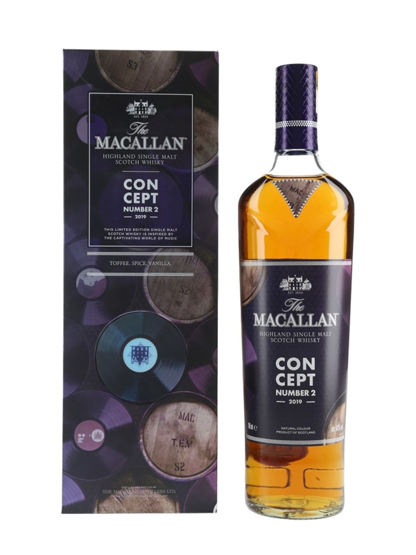 A bottle of The Macallan Concept Number 2 Highland Single Malt Scotch Whisky, a 2019 release inspired by the world of music. This was matured in sherry seasoned American oak casks before bottling.