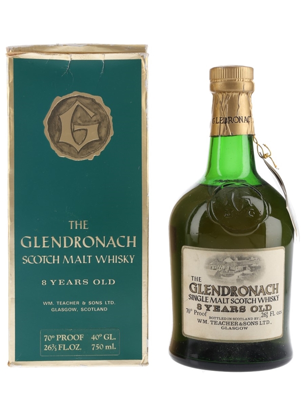 A bottle of The Glendronach 8 Year Old Single Malt Scotch Whisky. This was bottled by Wm Teacher & Sons Ltd, we estimate in the late 1960s to 1970s.