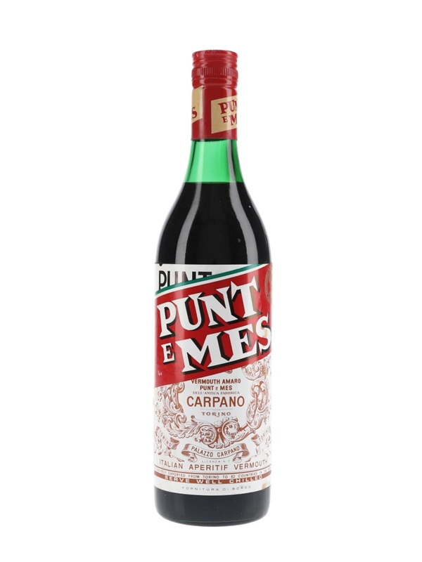 A litre bottle of Punt e Mes, the famously bitter red wine vermouth produced by Carpano in Turin, Italy. We estimate this was bottled in the 1970s.