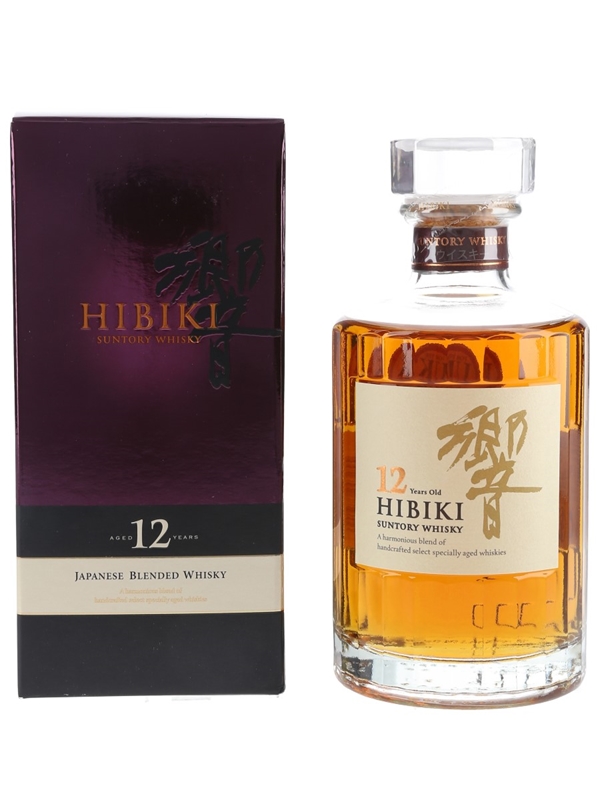 A 50cl bottle of Hibiki 12 Year Old Suntory Whisky, a blend of specially aged whiskies. This was imported to the UK by Morrison Bowmore Distillers Limited
