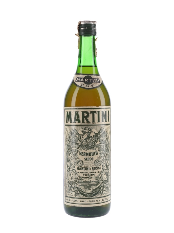 A litre bottle of Martini Dry Vermouth produced in Italy. We estimate this was bottled in the 1960s to 1970s.