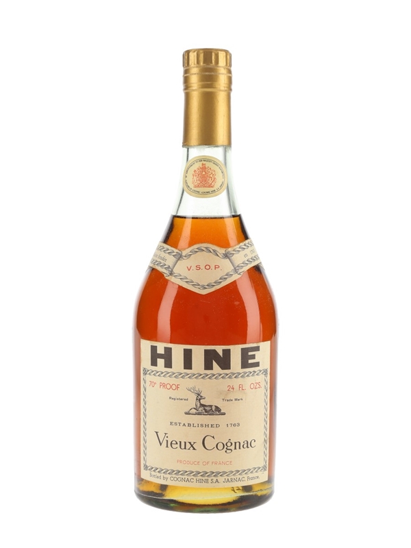 A bottle of Hine VSOP Vieux Cognac. We estimate this was bottled in the 1960s.