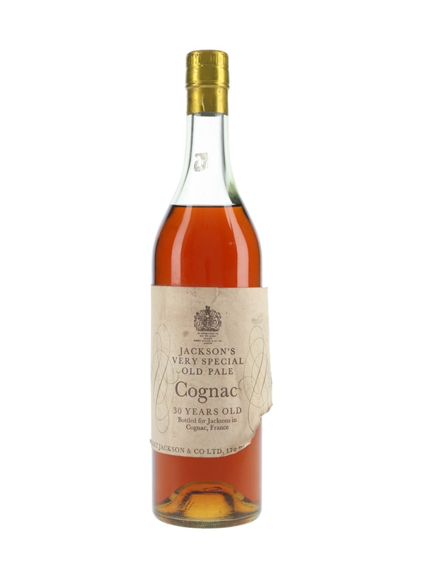 A bottle of Jackson's 30 Year Old Very Special Old Pale Cognac, bottled for Jacksons. We estimate this was bottled in the 1960s to 1970s.