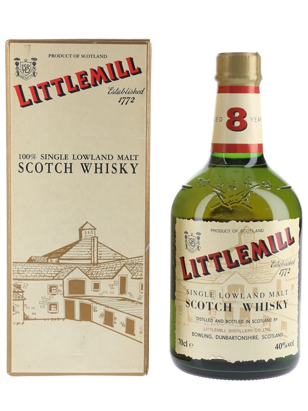 A bottle of Littlemill 8 Year Old Single Lowland Malt Scotch Whisky. We estimate this was bottled in the 1990s.