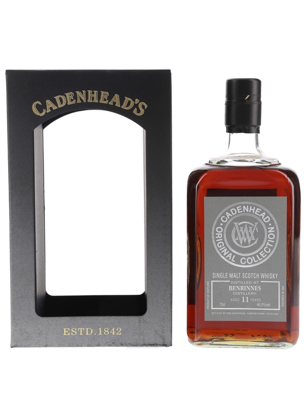 A bottle of Benrinnes 11 Year Old Single Malt Scotch Whisky, bottled by independent bottler Cadenhead's as part of Original Collection. The bottling code indicates this was bottled in 2021.