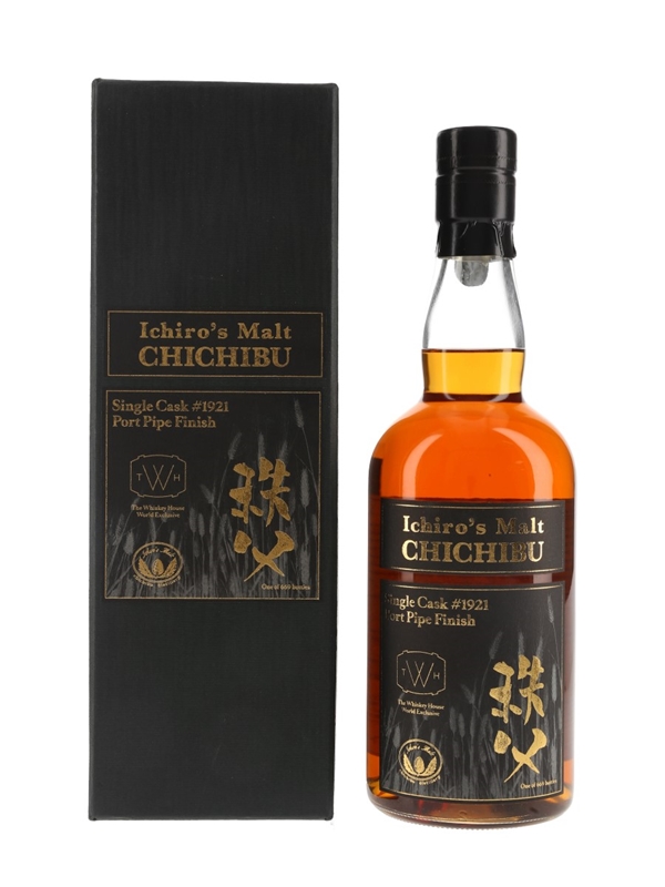 A bottle of Ichiro's Malt Chichibu Port Pipe Finish Japanese Whisky. This was distilled in May 2009, finished in a port pipe cask and bottled in October 2016 for The Whisky House World Exclusive.