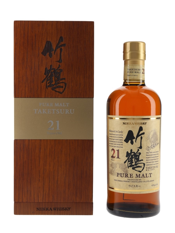A bottle of Taketsuru 21 Year Old Pure Malt Whisky. This was produced by Nikka Whisky Distilling and imported by La Maison Du Whisky.
