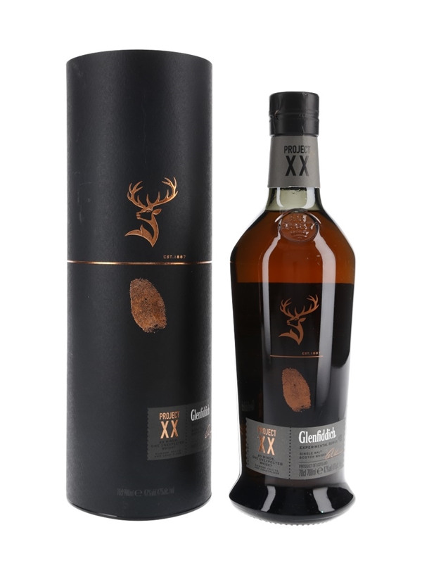 A bottle of Glenfiddich Project XX Single Malt Scotch Whisky.