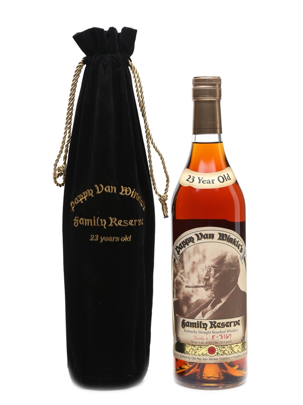 A bottle of Pappy Van Winkle's 23 Year Old Family Reserve.