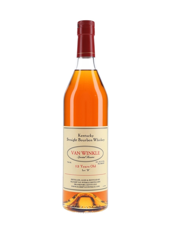A bottle of Van Winkle 12 Year Old Special Reserve Kentucky Straight Bourbon Whiskey, bottled by Old Rip Van Winkle Distillery, Frankfort. The bottling code indicates this was bottled in 2019.