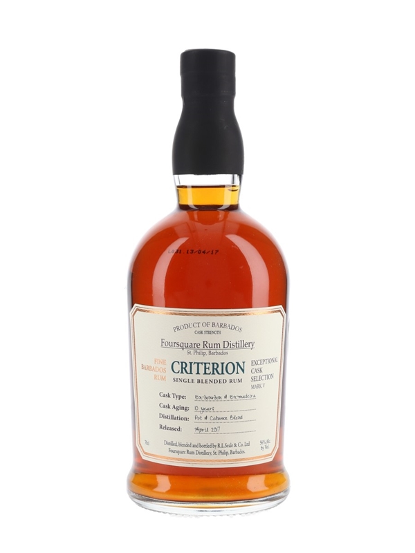 A bottle of Foursquare Criterion 10 Year Old Cask Strength Single Blended Fine Rum from Barbados. This is a blend of pot still and twin column continuous distillate, matured in ex-bourbon & ex-madeira casks for 10 years and released in April 2017 as part of the Exceptional Cask Selection series.