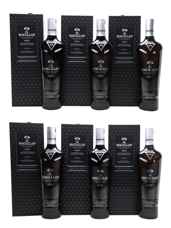 A case of six bottles of The Macallan Aera Highland Single Malt Scotch Whisky. These were matured in sherry-seasoned casks and bottled for the Taiwanese market.