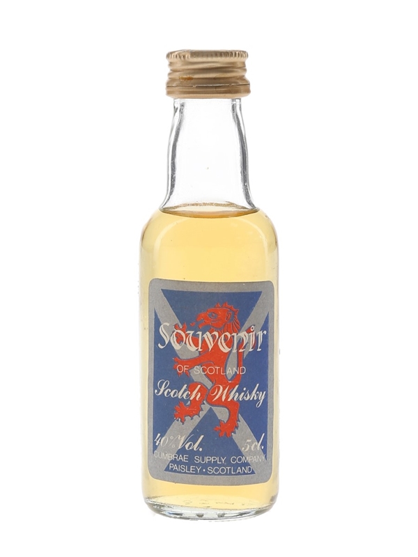 A miniature bottle of Cumbrae Supply Company Souvenir of Scotland Scotch Whisky.